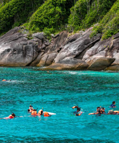 Arrive Similan Islands, first snorkeling and appreciating the underwater world, viewing beautiful fishes and colorful corals at Island No.5 and No.6.